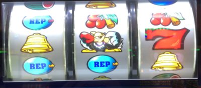 コンドルが上段まですべってべべボや中リール上段スイカ付き赤7などのリーチ目が出る場合があります。