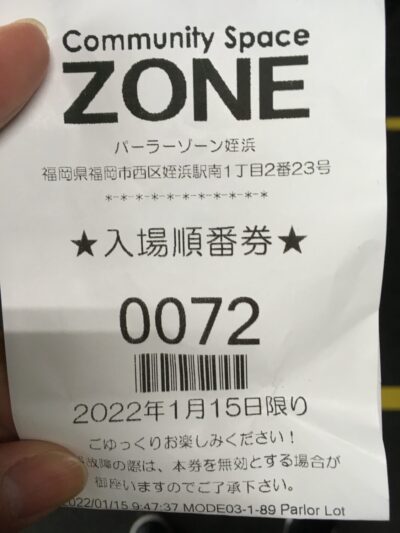 2022年1月15日パーラーゾーン姪浜